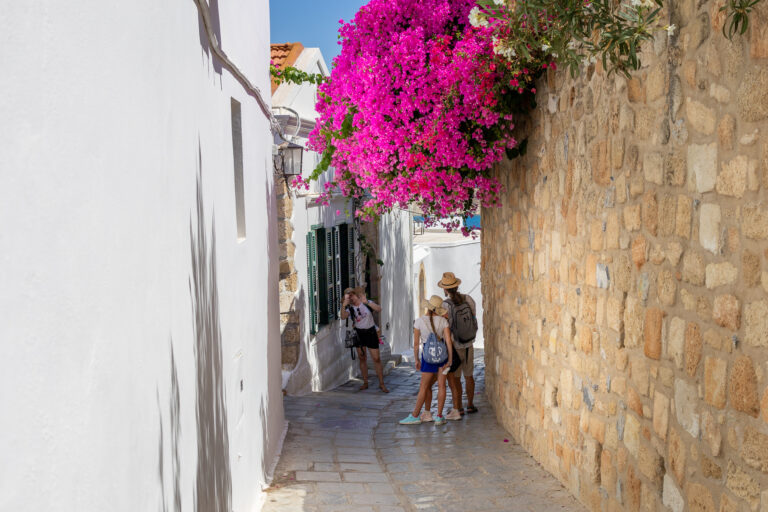 Take a leisurely stroll through the white village, where narrow picturesque streets wind between traditional Lindian homes and Captain's mansions